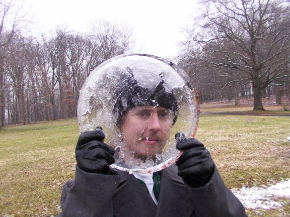 The bird bath was icy. I gave the platter of ice to boy, who promptly decided to dash it to pieces on the driveway.